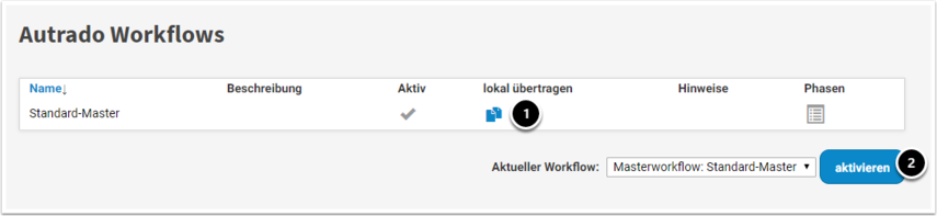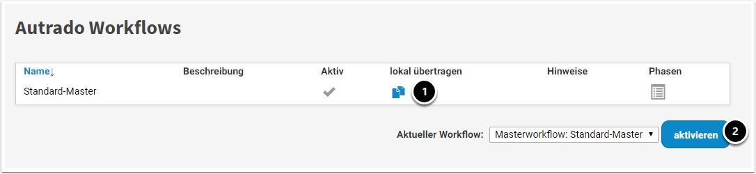 Um den Start zur vereinfachen, stell Autrado einen Standard-Workflow zur Verfügung. Dieser Workflow kann aktiviert und angepasst werden.