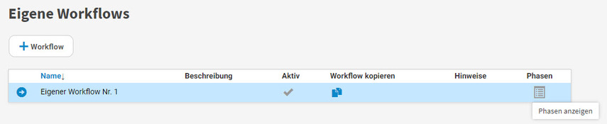 Nach Übertragung und Aktivierung des Autrado-Workflows kann dieser angepasst werden. Wählen Sie hierzu » Verkauf » Jobs & Dokumente » Jobmanager » Workflows und klicken auf das Icon unterhalb von Phasen.