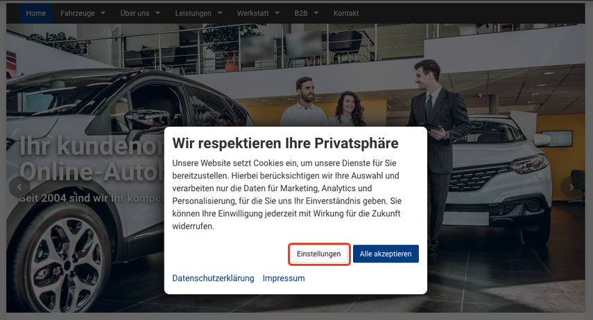 Gehen Sie wie folgt vor, um die Cookie- und Datenschutz-Einstellungen vorzunehmen: