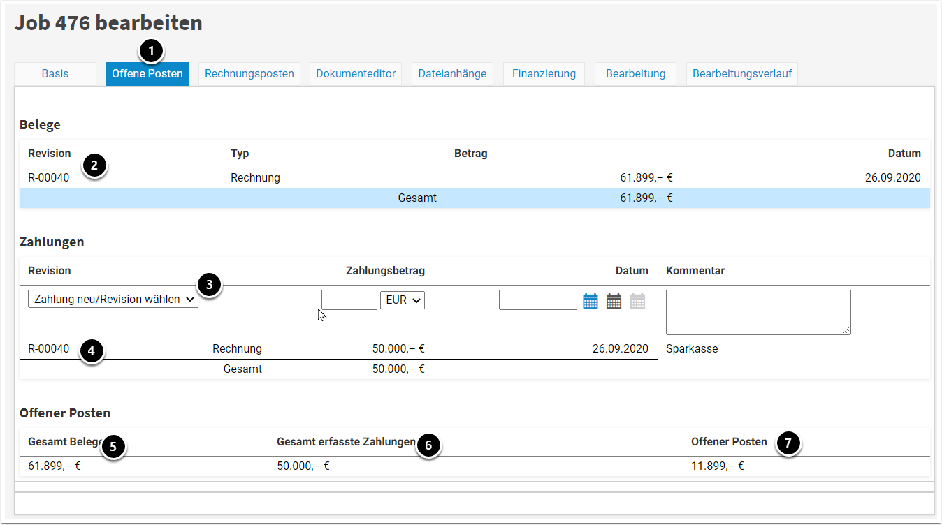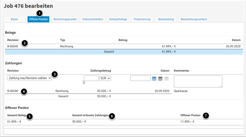 Einsehen der offenen Posten und Zahlungen eines Jobs