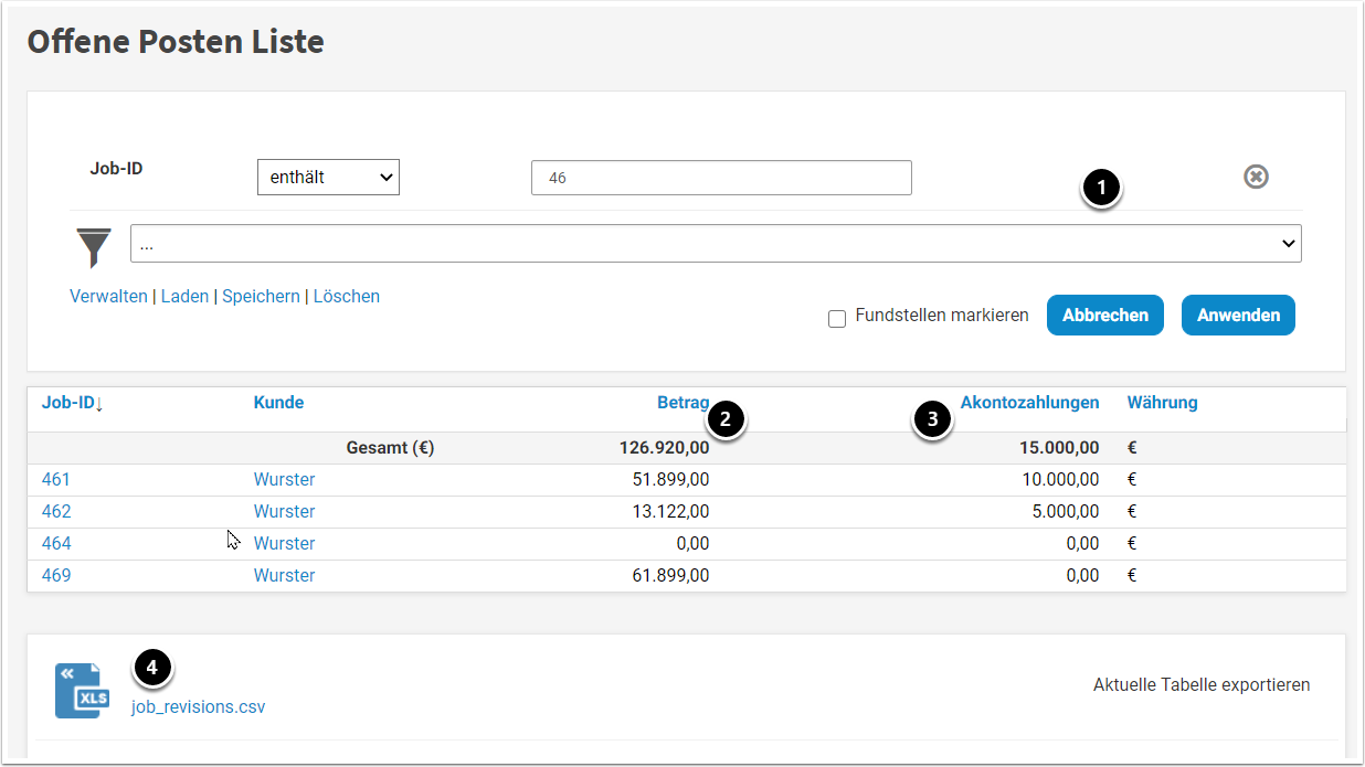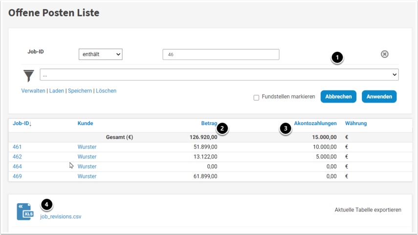 Offene-Posten-Liste einsehen, filtern und exportieren