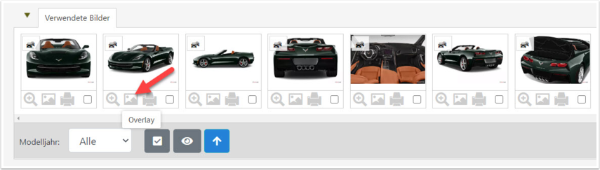 Klicken Sie bei verwendeten Fahrzeugbildern auf das Bildsymbol. Hierauf wird Ihnen das Bild inklusive Overlay in einem separaten Fenster angezeigt.