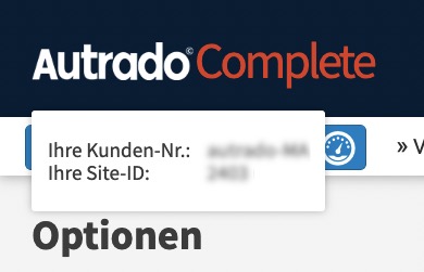 Ihre Site-ID finden Sie, wenn Sie mit der Maus über das Autrado-Logo im Backend fahren.