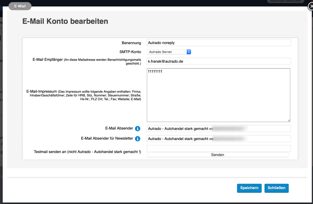 Füllen Sie unter ein gültiges E-Mail-Impressum ein, das dann für alle automatisierten Mails verwendet werden wird. Weitere Angaben zum E-Mail-Impressum finden Sie hier: www.impressum-recht.de/email-impressum.html