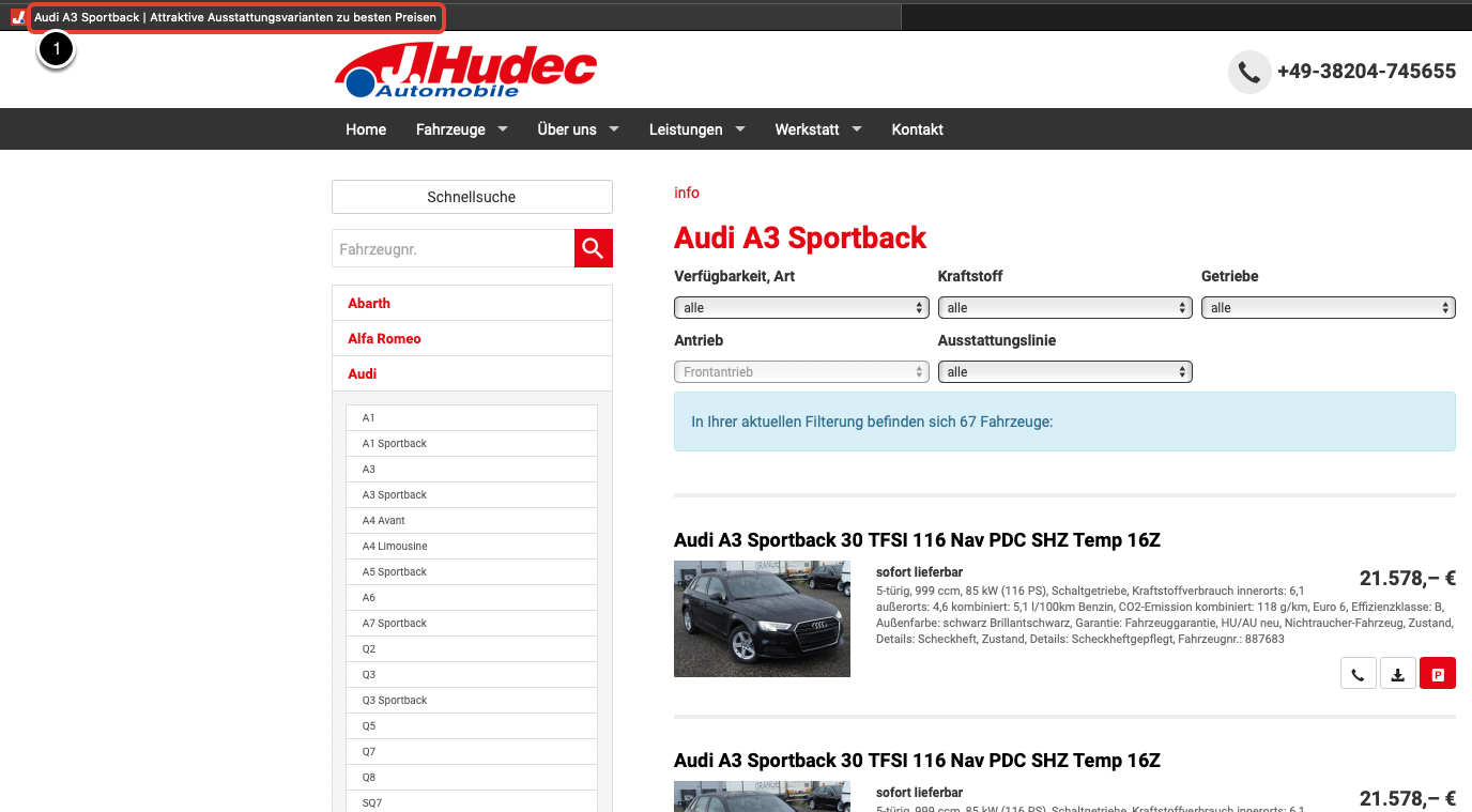 Die auf dieser Seite eingetragenen Seitentitel können pro Seite und Fahrzeug (im SEO-Register) überschrieben werden! Dieser Aufwand lohnt sich insbesondere für Aufbauseiten.