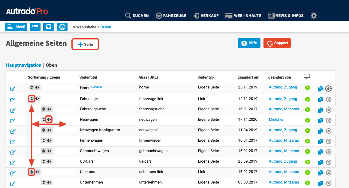Die Seiten im Autrado-CMS sind die Inhalte, mit denen Sie sich Ihren Kunden präsentieren, Ihr Unternehmen und Ihre Dienstleistungen vorstellen. Viele der Seiten können von Ihnen selbst angelegt und bearbeitet werden.