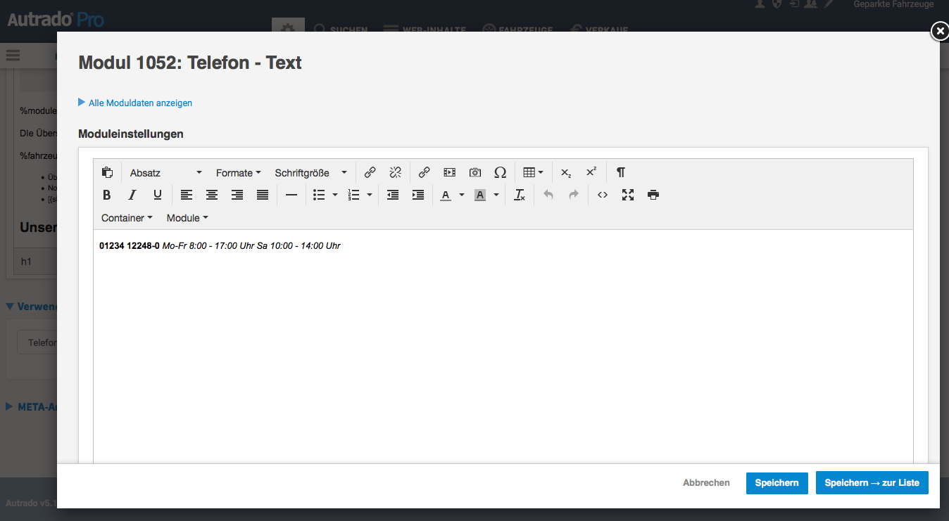 - Eigener Inhalt, z.B. die Information über die Öffnungszeiten eines Autohauses