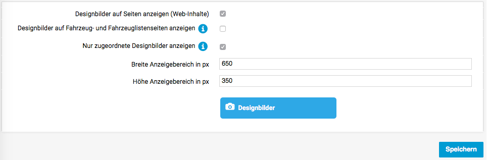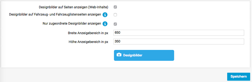 - Designbilder auf Fahrzeugseiten anzeigen: aktivieren, um auf den Fahrzeugseiten Designbilder anzuzeigen