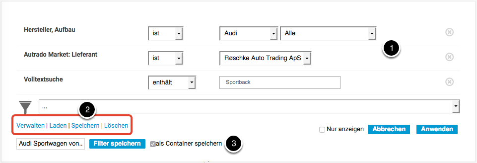 - Name des Fahrzeugcontainers: unter diesem Namen wurde der Filter als Container abgespeichert
