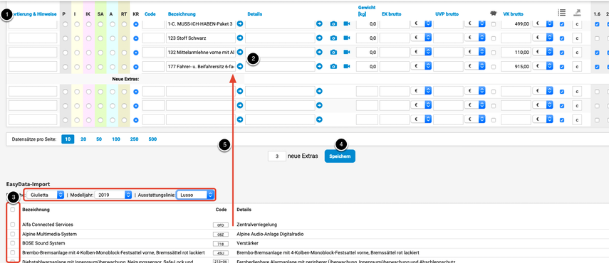 Autrado Bestellfahrzeug-Nutzer können diese Daten auch dazu verwenden, eigene Baureihen zu erstellen. Hierzu gibt es in der Baureihe auf den entsprechenden Unterseiten wie Serienausstattungen, Extras, Farben entsprechende Filter auf diese Daten. Die Daten lassen sich in die Bearbeitungsansicht kopieren und 1:1 verwenden oder auch abändern.