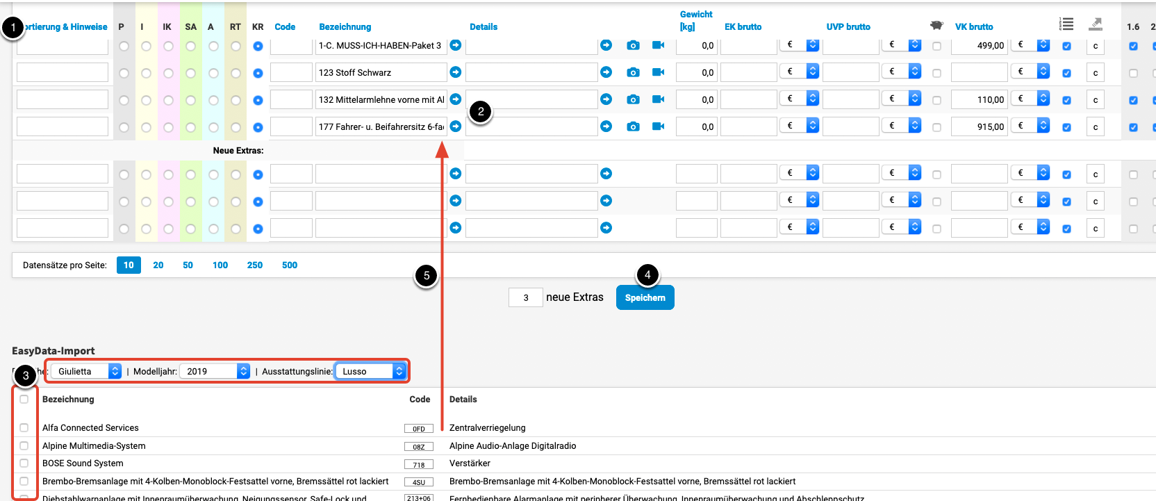 - sowie deren Listenpreise und die Preise aller Sonderausstattungen