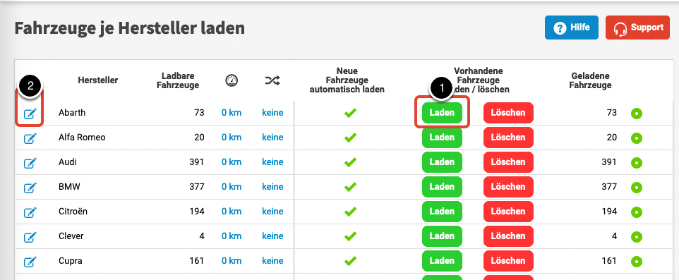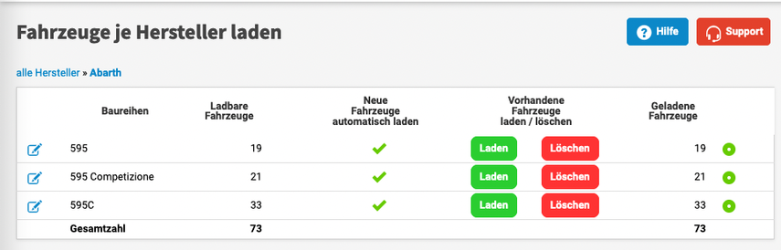 - um die Fahrzeuge dieser Marke nicht komplett zu laden, klicken Sie das Bearbeiten-Symbol und und rufen damit die Hersteller-Modellseiten auf: