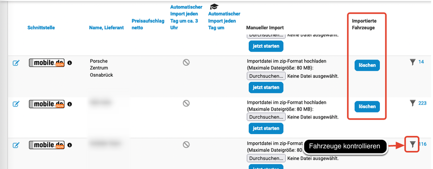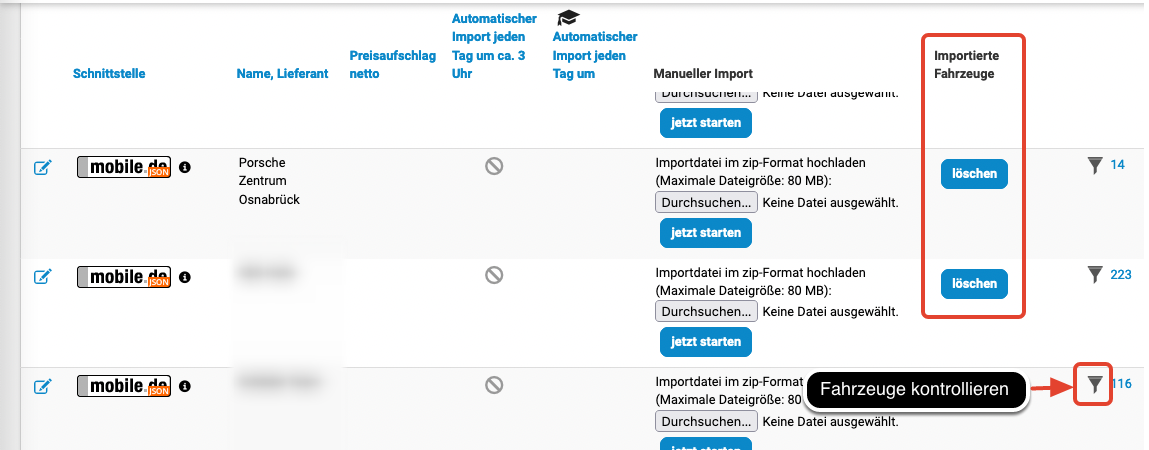 Importquelle bearbeiten (am Beispiel einer mobile.de-Datensicherung)