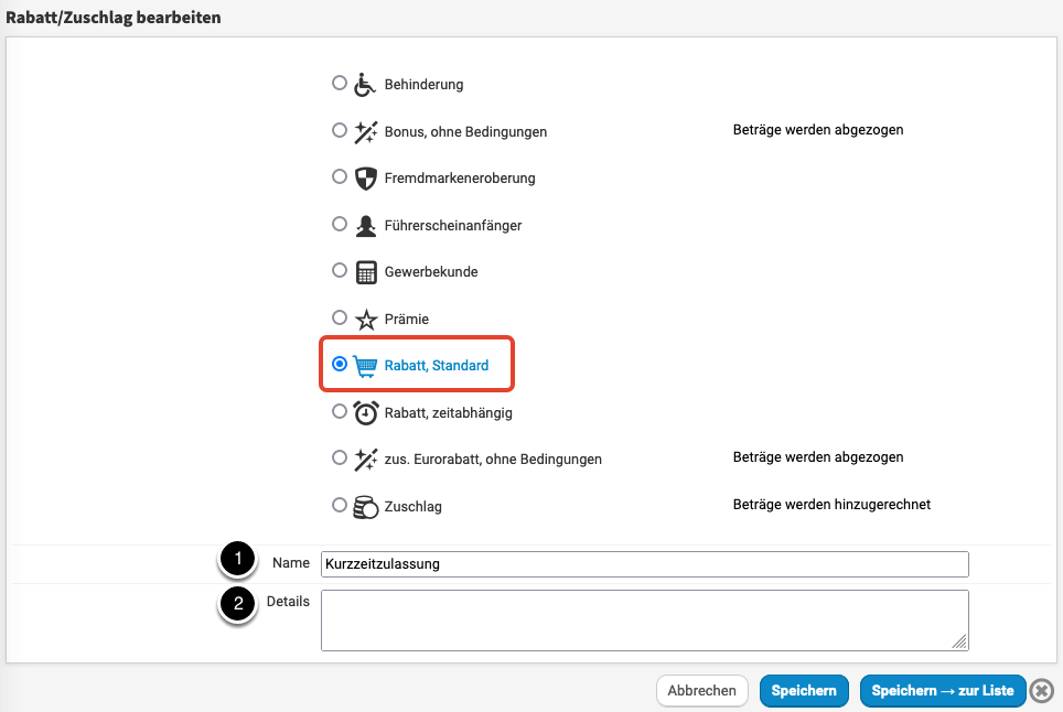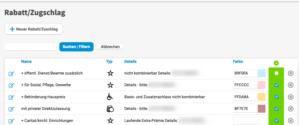 - Preisvorgaben: Zusätzliche Preisgestaltung | Preisrabatte: Verwendung