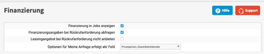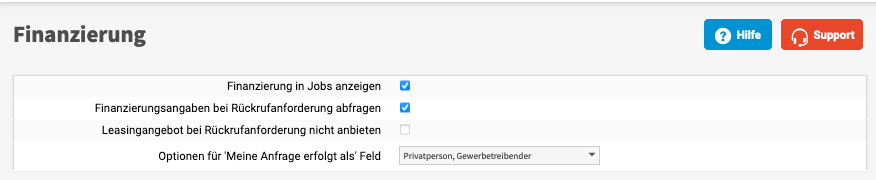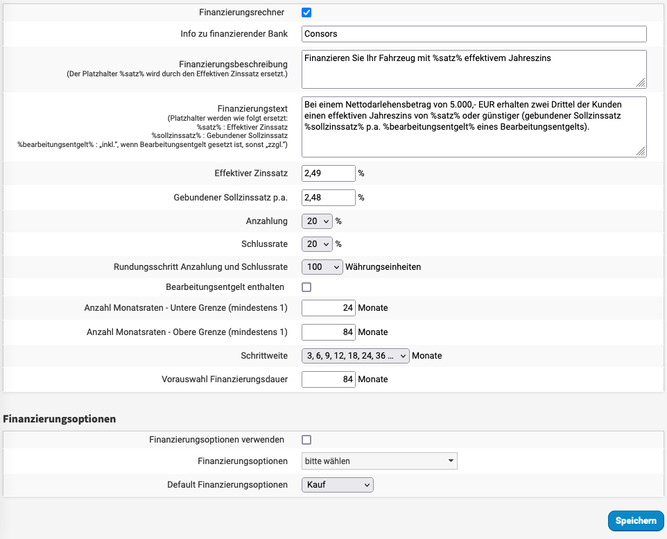 Gewünschte Finanzierungsangaben vorgeben und speichern.