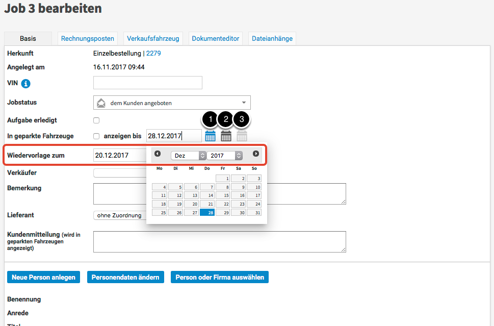 Um festzulegen, ab wann der Job in der Wiedervorlage anzuzeigen ist, klicken Sie...