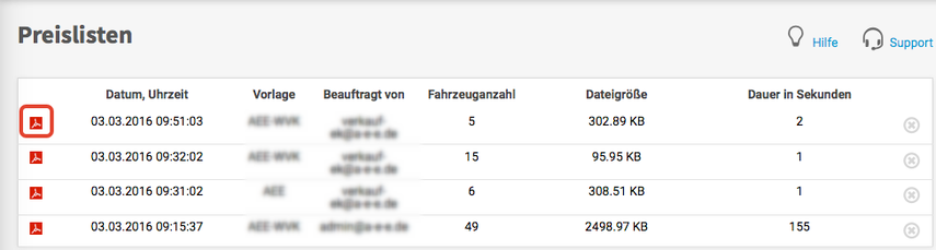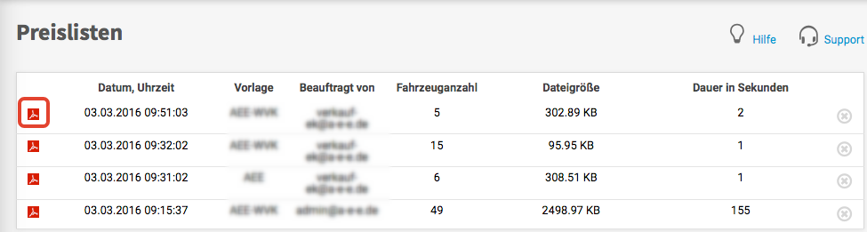 - auf der Seite "Preislisten" die neue Preisliste als PDF-Datei einsehen und zur weiteren Verwendung abspeichern