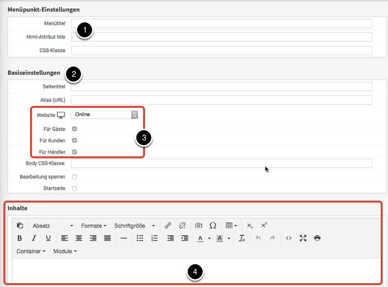 - Inhalte einstellen im Inhalte-Editor