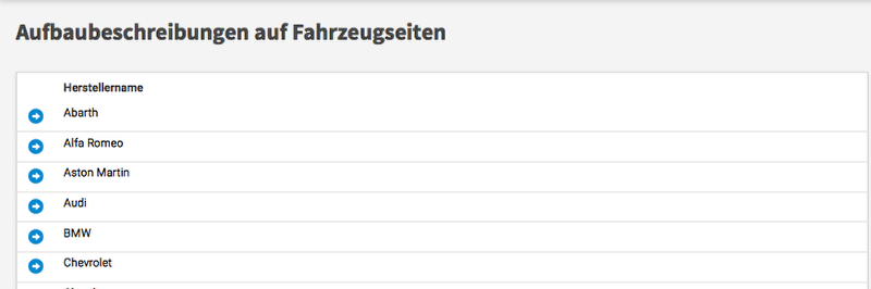 Klicken Sie auf einen Herstellernamen, um bestimmte Inhalte für einen Aufbau einzustellen:
