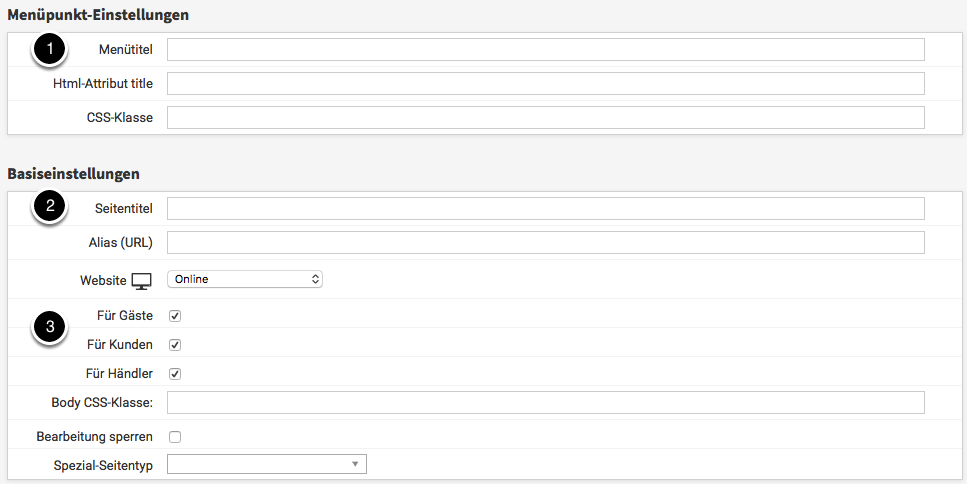 - die Basiseinstellungen werden standardmäßig vom Menütitel übernommen