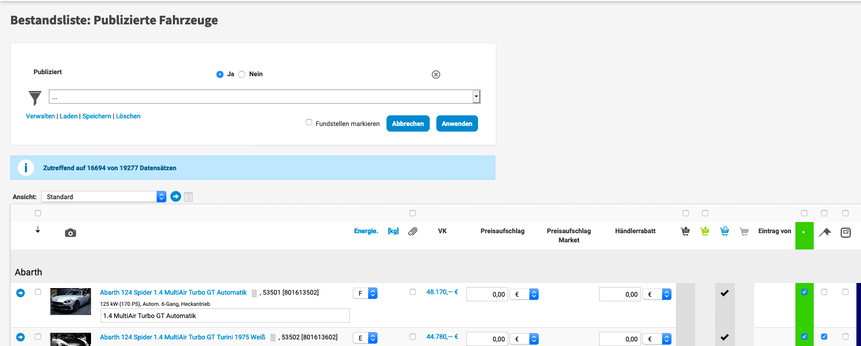 Natürlich können Sie die Fahrzeuge noch genauer filtern, siehe "Filter einsetzen".