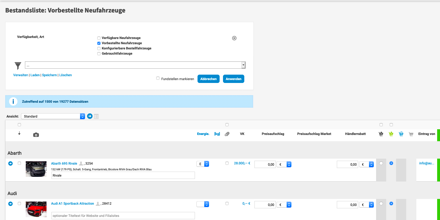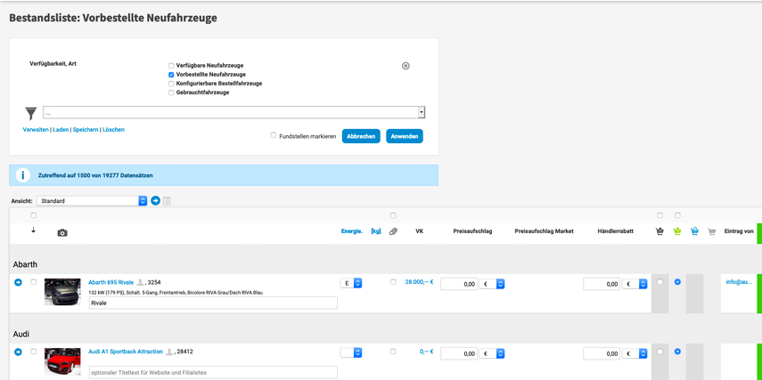 Natürlich können Sie die Fahrzeuge noch genauer filtern, siehe Filter einsetzen.