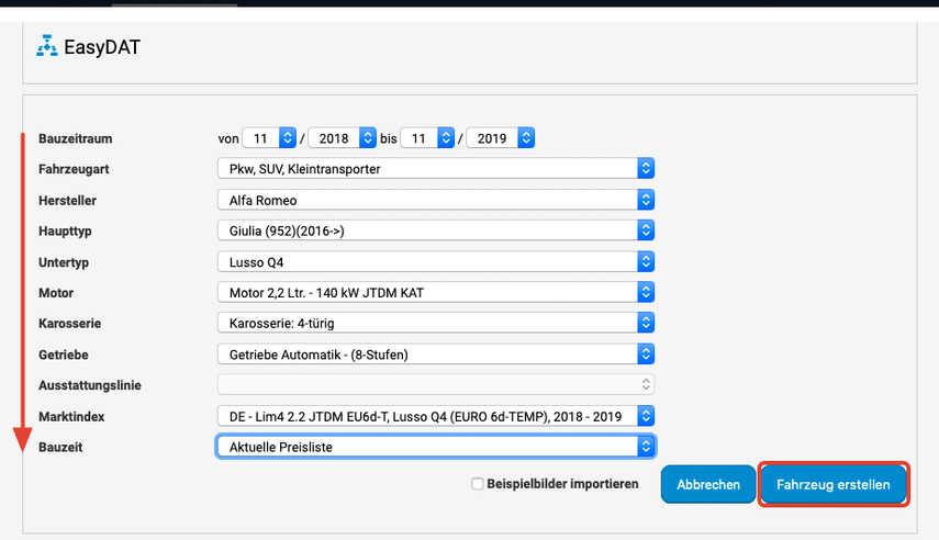 DAT-Datenbankbasierte Fahrzeugeinpflege