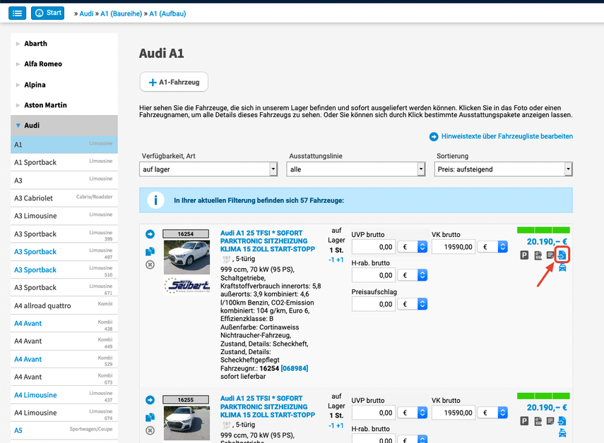- Nummer des Angebotsfahrzeugs und ggf. Nummer der Fahrzeugakte