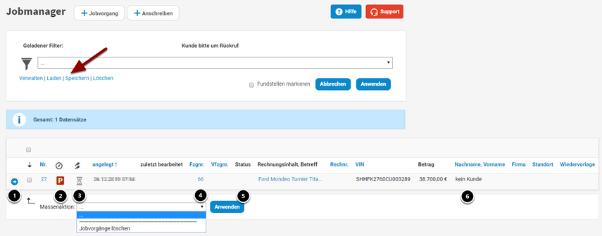 Beim Speichern erhält der Job eine Jobnummer und befindet sich ab sofort in der Liste der Jobs.