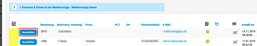 - Nächster Schritt (Sanduhr = Kunde ist am Zug)