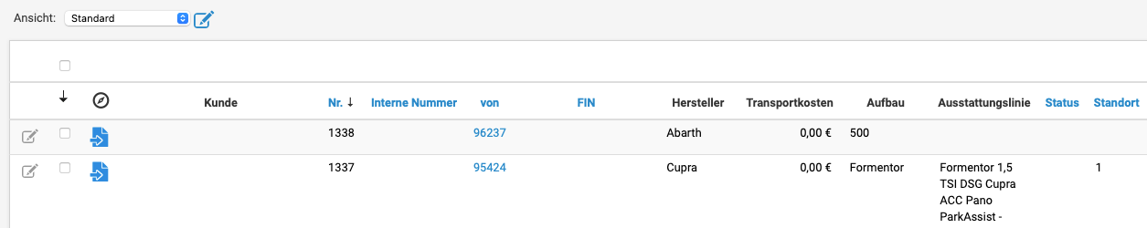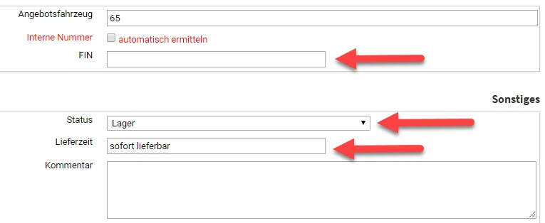 Vervollständigen Sie am besten gleich die Fahrzeugbasisdaten mit der FIN, Status und Lieferzeit.