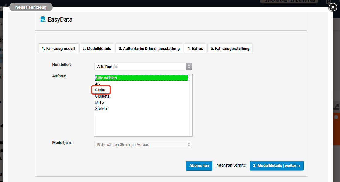 Fahrzeugeinpflege EasyData