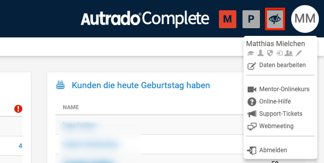 Wenn Sie als Mitarbeiter eingeloggt sind, können Sie jederzeit zwischen diesen Ansichten umschalten.