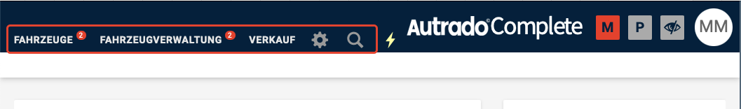 - Navigationspunkte: Einstellungen, Web-Inhalte, Fahrzeuge, Verkauf: diverse Untermenüpunkte