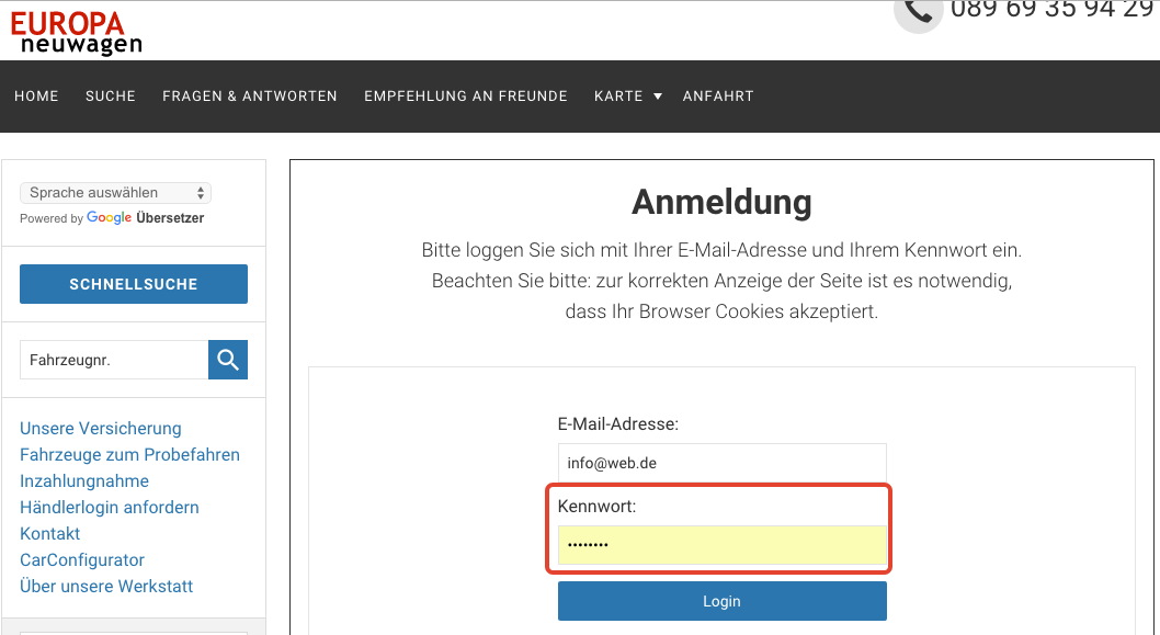 Sichere Kennwörter in Autrado müssen mindestens 8 Zeichen umfassen und dabei zwei der folgenden Elemente enthalten: Großbuchstaben, Kleinbuchstaben, Zahlen oder Symbole.