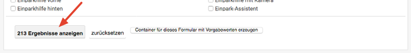 Button anklicken, um die Fahrzeuge mit den gewünschten Eigenschaften aufzulisten.